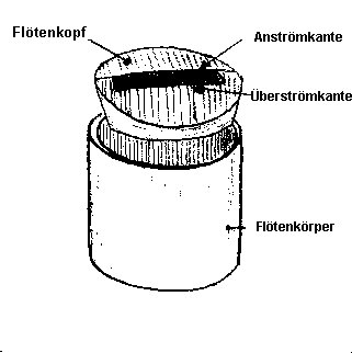 Die fertige Flöte in "Explosionszeichnung" mit abgehobenem Flötenkopf.