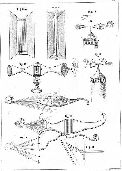 **) Athanasi Kircheri, e soc. Jesu, Neue Hall- und Tonkunst, in unsere teutsche Muttersprach übersetzt von Agatho Carione, Nördlingen 1684, fol.; ein mit Kupferstichen wohl verziertes Werk, welches sich Freunden einer spaßhaften Lectüre empfehlen läßt. Im zehnten Kapitel: Von verschiedenen Kunst-Wunderwerken und der natürlichen Stimm- und Tonzauberey, handelt das dritte Kunstwerk, S. 105, von der Verfertigung eines Instruments, "das allein durch Trieb des Windes, so lang er...