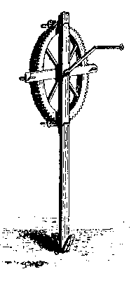 Ein kräftiger, aus Draht gebogener Haken (Nr.1) in Hüfthöhe zum Befestigen der gedrehten Fäden (Kardeel=eine Hälfte einer Schleppleine)