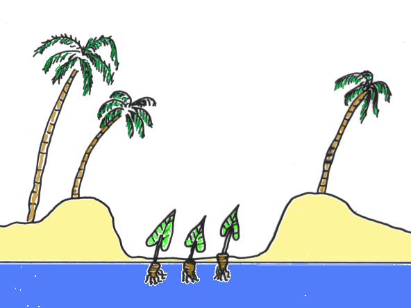Wie können die Pflanzen jedoch überhaupt auf Inseln angebaut werden, wenn diese über keine Süßwasser-Flüsse und -Bäche verfügen und dazu häufig nur aus einer Anschwemmung von Sand und allenfalls porösem Korallenkalk bestehen?